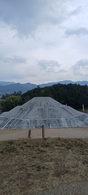 道に迷いながらやっとの思いで到着すると、目に飛び込んできたのは7世紀に造られた八角形をした美しい墳丘、ではなく、つい最近取り付けられたと思われる貼り紙に書かれた「調査中のため見学出来ません」という非情な13文字でした。