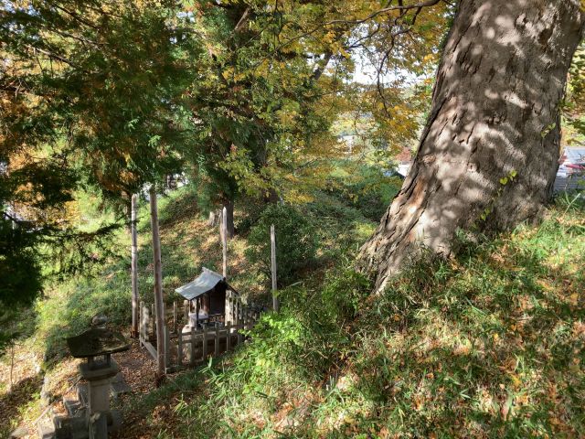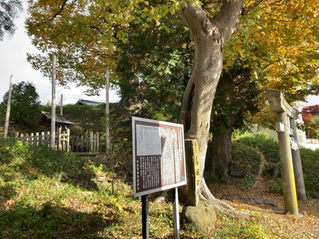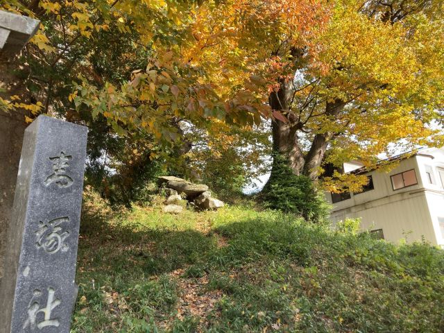 諏訪湖を臨む丘陵先端部に立地する墳長57mの前方後円墳。埋葬施設は後円部西側に開口する両袖型の横穴式石室で全長約7.4m、石材に安山岩の自然石が使用されている。石室の構造や出土した円筒埴輪などから6世紀後半~末頃の築造と推定されている。県指定史跡、1965(昭和40)年指定。 |