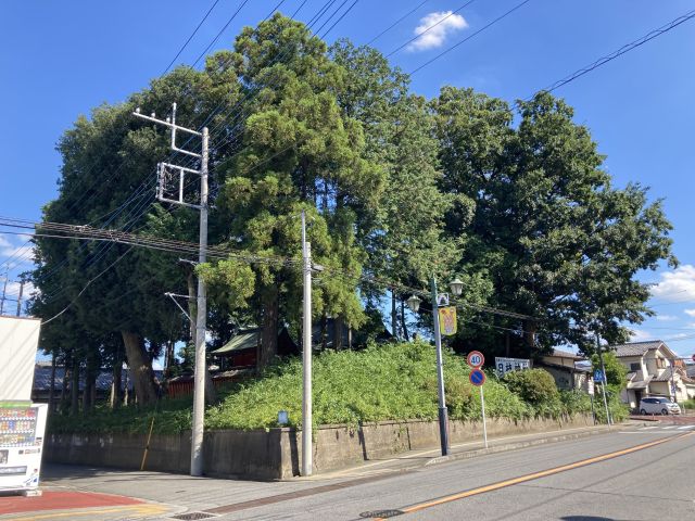 神社の参道から入ると、社の左手に変な形のマウンドがあります。これが古墳?と首を傾げますが、小さな神社の境内にはこのマウンドしかありません。良く見るとマウンドのてっぺんに古墳名を表示した小さな看板がありました。この形を見ると、本当に前方部の一部との実感が湧いてきます。しかし、残念と言うべきか、よく残ったと言うべきか?チョット複雑な気がします。