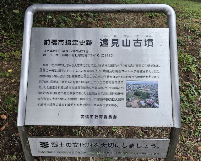 利根川右岸の台地上に立地する全長87.5mの前方後円墳。後円部径52.5m・前方部幅58.0m、墳丘から葺石や埴輪片、周囲には濠の存在が確認されている。内部構造は明らかになっていないが、5世紀後半の築造と推定されている。 |