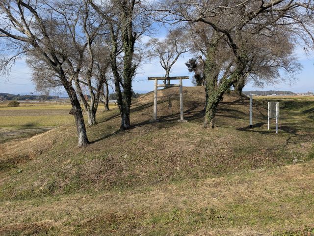全長40mの帆立貝式古墳。円丘部径27m・高さ3.5m、方丘部幅10.5m・高さ1.3mを測る。古墳に伴う遺物は出土していない。5世紀末~6世紀前半の築造。市(旧那須郡湯津上村)指定史跡、1966(昭和41)年指定。 |