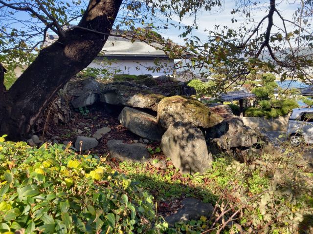 横穴式石室が露出する。石室は壊れているが、元は南側に開口していた。 |