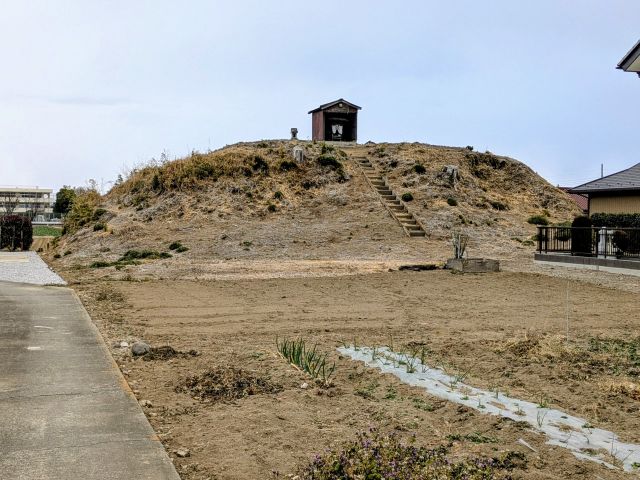直径約30m・高さ約5mの円墳。墳頂部に祠あり。 |