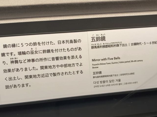 この古墳は明治35年ごろ発掘された。五鈴鏡は直径9.58センチメートル、白銅製。6世紀代のものである鏡は、当時の豪族が宝物として保持し、埋葬の際に棺の中に入れて魂が欠せるのを防いだともいわれる。五鈴鏡は東京国立博物館に保存されている(現地説明板より)。 |