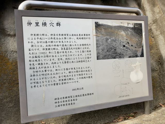 菊名海岸に面する丘陵崖面に所在。大正・昭和期に7基、平成期の治山工事で16基が発見された。 |