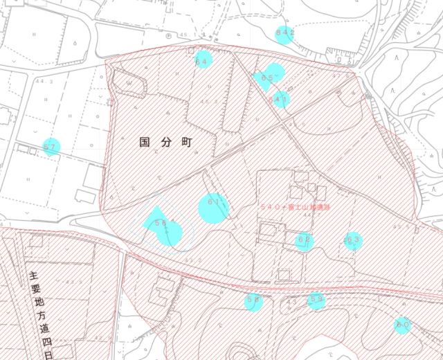 現存する富士山1号墳を含め全14基を確認する富士山古墳群の中の1基。墳丘部は既に削平されていたが埴輪列が見つかり1976年度緊急調査された。 |