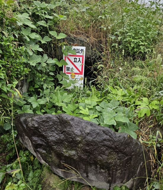 駐車場への坂道は車で上ることができず。4WDの車でないと辛いですね。 駐車場から奥へ行き、右折し道を上っていくと柵で囲まれた道が道にあります。その時に古墳があります。 奈良県にある谷脇古墳のように玄室が横長です。 上側の土がなくなっており、天井の岩を鉄棒で支えていました。 古墳の通路を挟んで西側に複数の古墳があり、天井石がないものや開口しているものがありました。