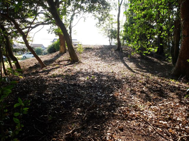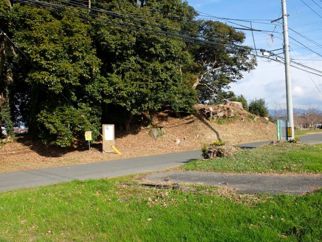 前方部は道路で大分破壊されていますが端部は道路の反対側で残っています。
